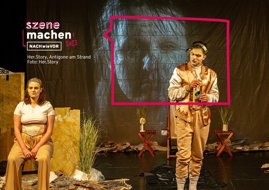 Sei es am Mittelmeer oder an den europäischen Grenzen – es werden Milliarden investiert, um die Außengrenzen Europas zu “schützen”. Dabei sterben etliche Menschen, die versuchen die Grenzen zu passieren und an ein sicheres Ziel zu gelangen. Der Herrscher Kreon möchte von den Toten nichts wissen, denn sie sind nicht "unsere". Ihm steht die protestierende Antigone entgegen, die sich für diejenigen einsetzt, die nicht mehr leben. Macht, Verantwortung, Ignoranz, Gesetz, Moral, Solidarität… bei ihrem Disput stoßen wiederstrebende Kräfte aufeinander, die nicht auf einen Nenner kommen. Und zwischen Antigone und Kreon steht der Chor, der mitverhandelt, agiert, zur Disposition stellt und den Fragen nachgeht: Wem gehören die Toten? Wem gehört die Welt? Wie viel Verantwortung kommt jedem Einzelnen zu? Was passiert, wenn wir handeln oder nicht handeln? Und wenn wir handeln, wie kann ein gesellschaftlicher Neuentwurf aussehen? Für die Eröffnung von szene machen! 2023 wird das Stück "Antigone am Strand" als performative Lesung präsentiert.